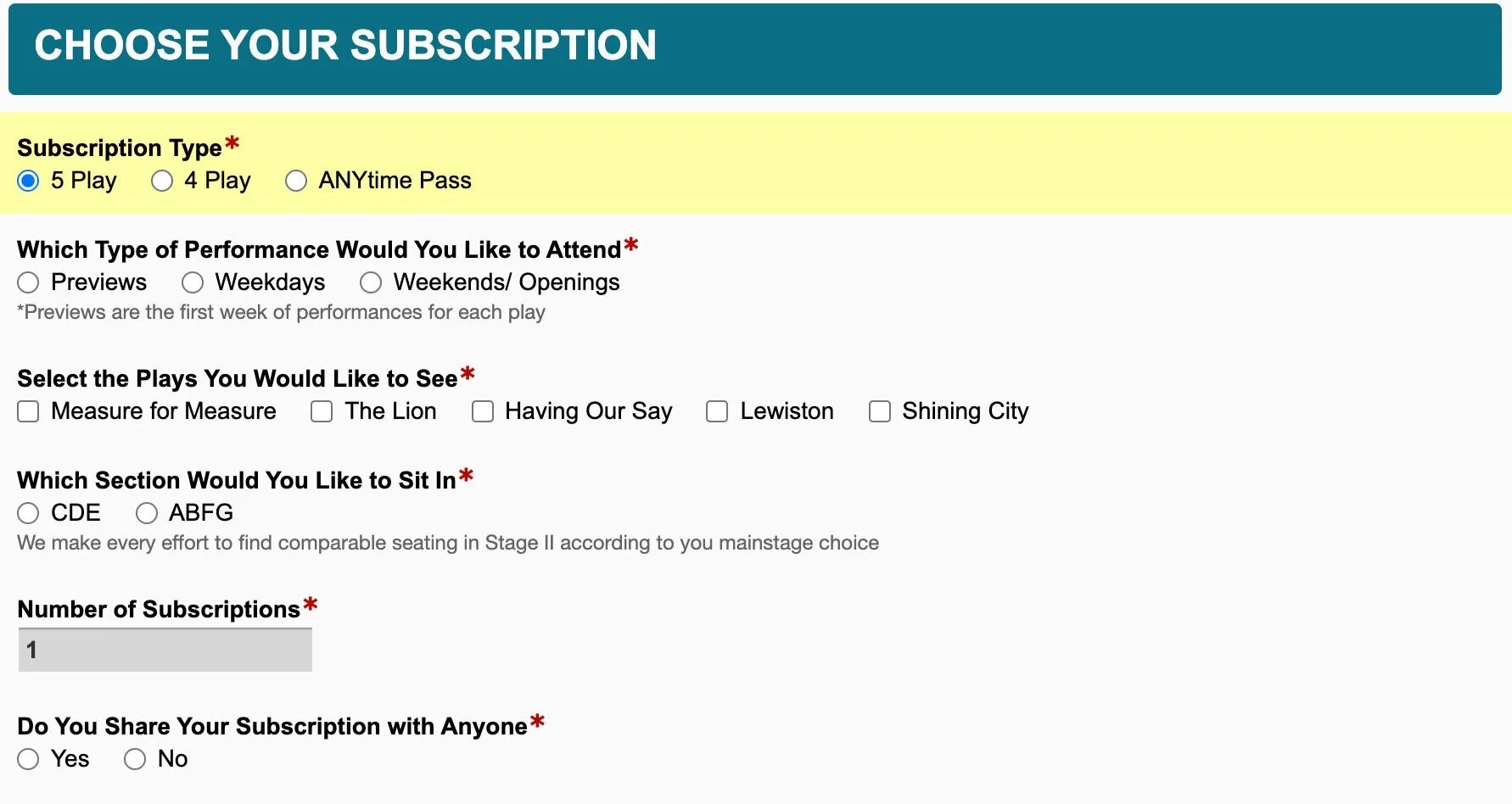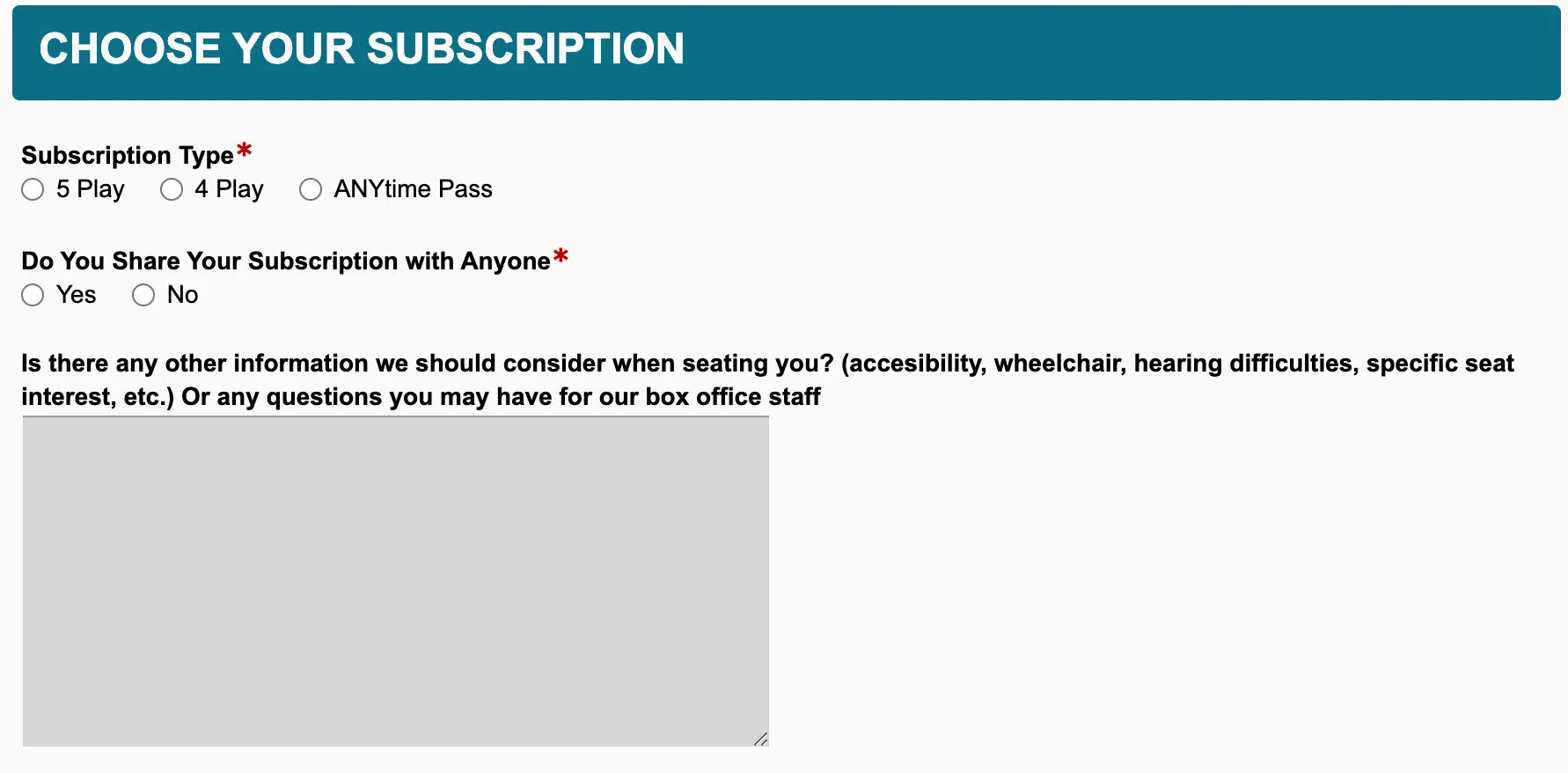 I designed and launched the theatre’s first online subscription order form that provided flexibility and convenience in ordering for users and in processing for box office staff.